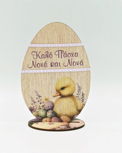 Ξύλινο πασχαλινό αυγό σε βάση με παπάκι