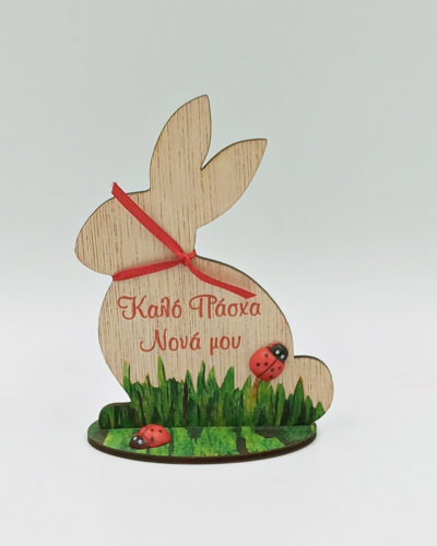 Ξύλινο λαγουδάκι σε βάση με πασχαλίτσα