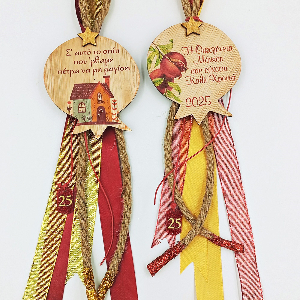 Γούρι με ρόδι από ξύλο και την εκτύπωση του ονόματος/μηνύματος που επιθυμείτε