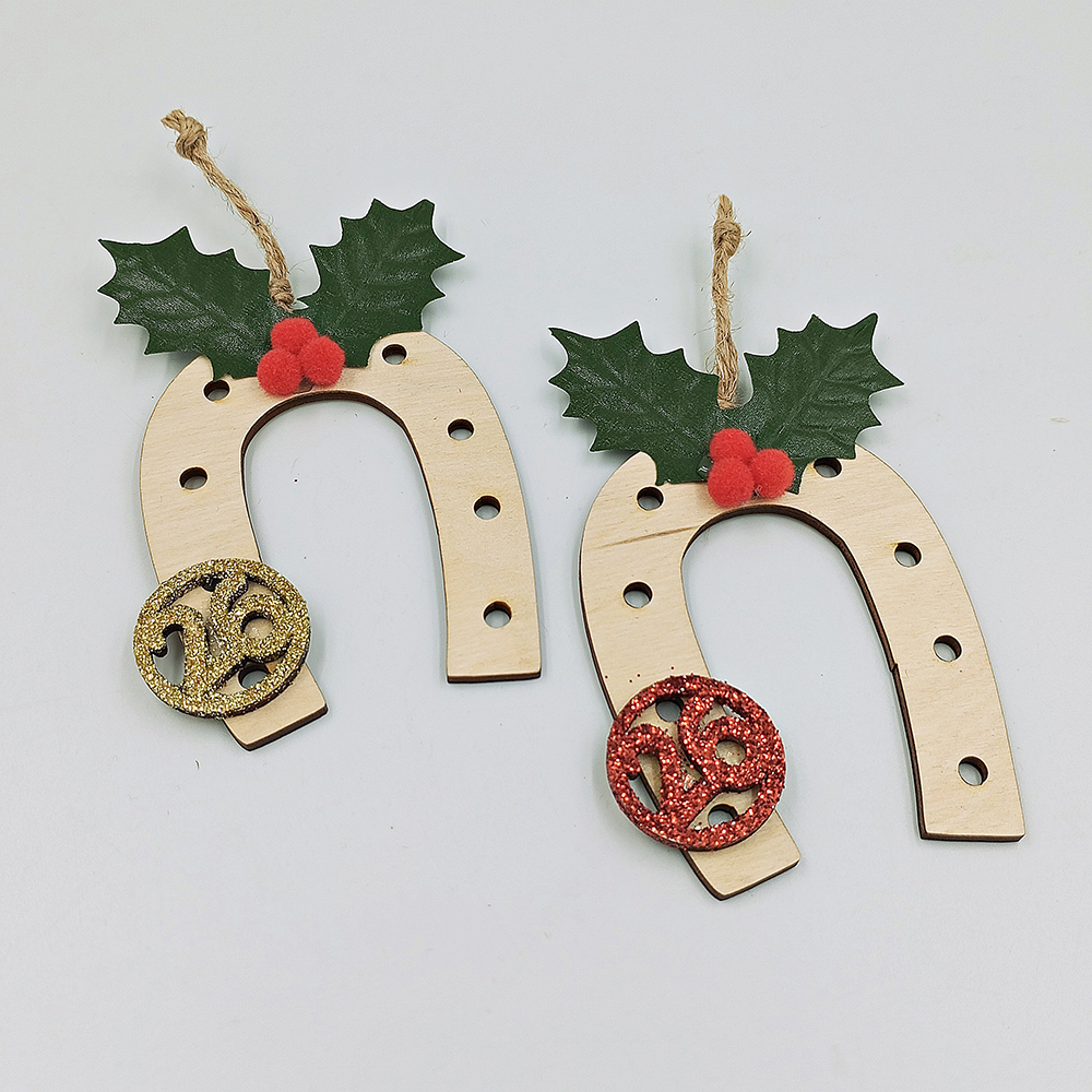 Ξύλινο πέταλο με 2026 ντυμένο με χρυσόσκονη σε 2 χρώματα – χρυσό ή κόκκινο – και φυλκαράκια