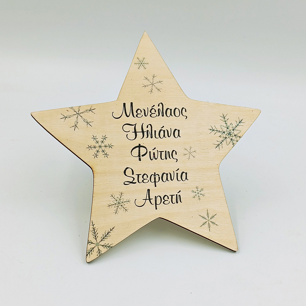 Αστέρι κορυφής από ξύλο με εκτύπωση τα ονότα που επιθυμείτε και χιονονιφάδες