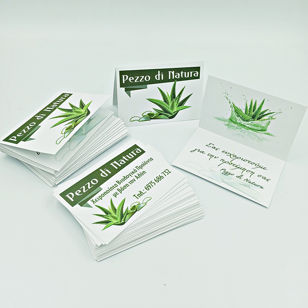 Ανοιγόμενη επαγγελματική κάρτα με ευχαριστήριο μήνυμα στο εσωτερικό και επαγγελματικές κάρτες
