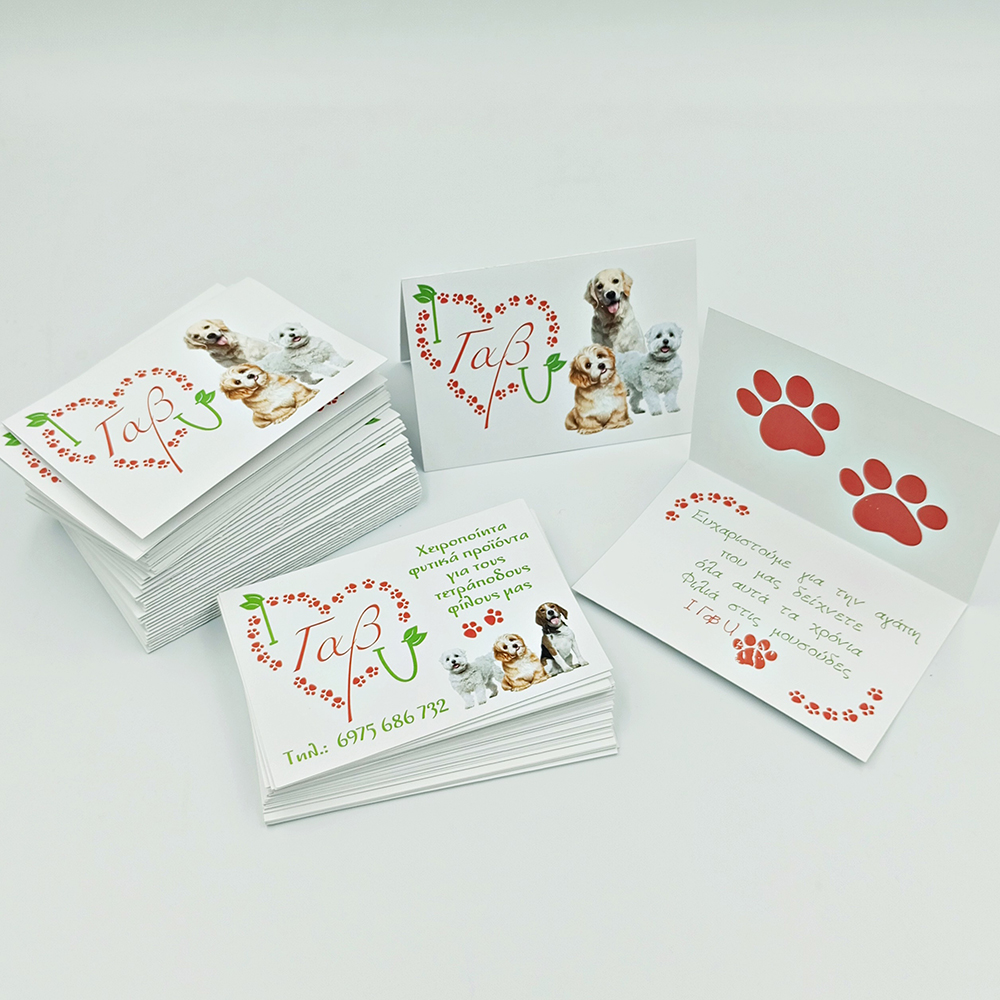 Ανοιγόμενη επαγγελματική κάρτα με ευχαριστήριο μήνυμα στο εσωτερικό