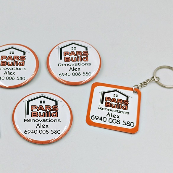 Κονκάρδα 58mm με μαγνήτη και μεταλλικό μπρελόκ 2πλής όψης 5 Χ 5εκ.