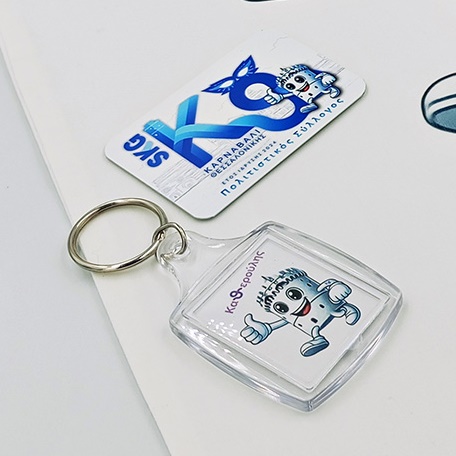 Μεταλλικό μαγνητάκι 7,4 Χ 5εκ. και πλαστικό μπρελόκ 2πλής όψης 4,5 Χ 5,5εκ.