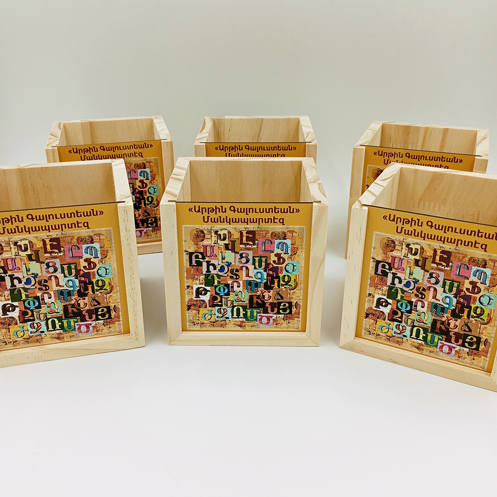 Ξύλινες μολυβοθήκες με εκτύπωση σε mdf για τους μαθητές Αρμένικου Σχολείου